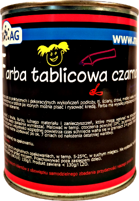 Farba tablicowa przeznaczona jest do praktycznych i dekoracyjnych wykończeń podłoży, tj. ściany, drzwi, meble i wiele innych. Pozwala przekształcić malowane powierzchnie w tablice po których można pisać i rysować kredą. Farba ma wysoką przyczepność do podłoża oraz jest odporna na częste mycie i ścieranie.
