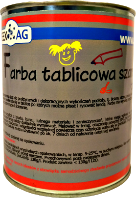 Farba tablicowa przeznaczona jest do praktycznych i dekoracyjnych wykończeń podłoży, tj. ściany, drzwi, meble i wiele innych. Pozwala przekształcić malowane powierzchnie w tablice po których można pisać i rysować kredą. Farba ma wysoką przyczepność do podłoża oraz jest odporna na częste mycie i ścieranie.